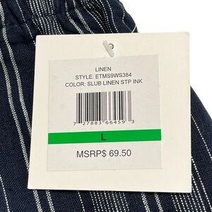 NWT Ellen Tracy Navy Striped 100% Linen Elastic Waist Skirt Size Large