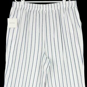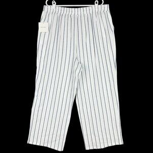 NWT Ellen Tracy Women's Linen Blend Pull-on Straight White Blue Stripe Pants Size XL