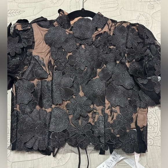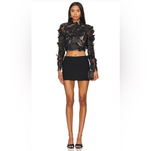 NWT Elliat X REVOLVE Elia Top XS BLACK 3D Flower Appliqués