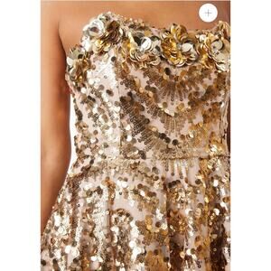 NWT Elliatt Alisha 3D Strapless Flare Mini Dress Gold Floral Applique sz Small