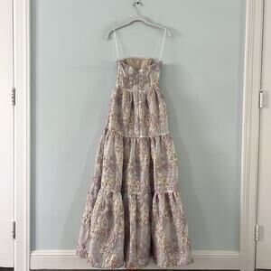 NWT Elliatt Halite Blush Pink Metallic Jacquard Side Slit Maxi Dress