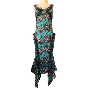 NWT Elliatt Quartz Dress Gown Peacock Black Teal Lace Brocade Embroidery Sm