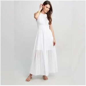 NWT Ellie Tahari Sage Maxi Dress in White 100% Cotton Lined Size 12