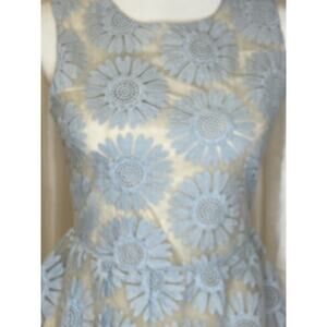 New with tags. Size Small. Ellison fit and flare dress. Gorgeous embroidered blue floral overlay over a cream shell. Great for a wedding guest, sorority rush, or homecoming.