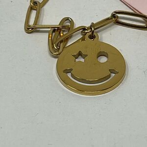 This is a NWT Ellison + Young paper clip happy face, gold tone, with one star eye.