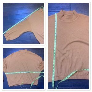 NWT Elodie Clay Mock Neck Long Balloon Sleeve Ribbed Knit Top XL