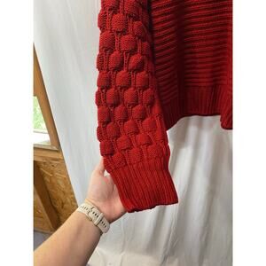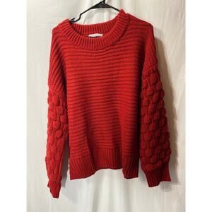NWT Elodie Garnet Red Chunk Knit Pullover Bubble Sleeve Sweater XL