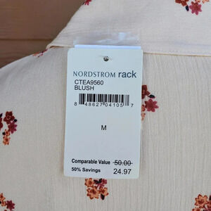 NWT Elodie Nordstrom Rack Short Sleeve Button Down Shirt Blush Pink Cropped Size Medium