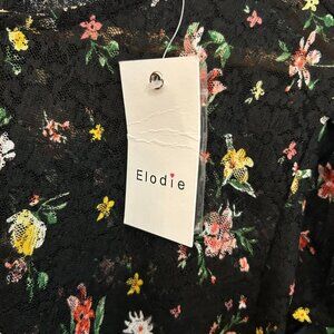 NWT Elodie Women's Floral Sheer Lace Short Ruched Sleeve Top In Black, Women's L
