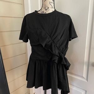 NWT - Eloquii Black Asymmetrical Ruffled T-Shirt Top. Never worn. Thick T-Shirt material.