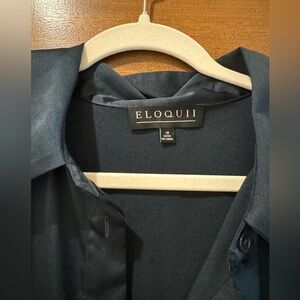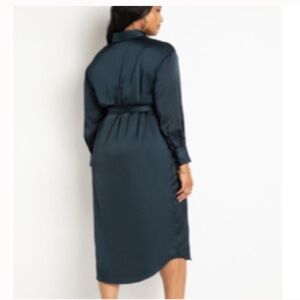 NWT Eloquii Deep Blue Satin Belted Maxi Shirtdress Size 18