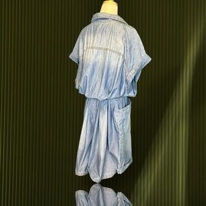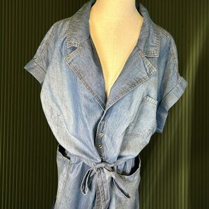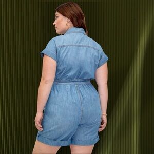 NWT Eloquii Elements Chambray Blue Belted Denim Romper Plus Size 28