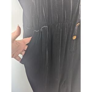 NWT Eloquii Elements Velvet Sleeveless Cropped Jumpsuit in Black Onyx. The top 3 buttons are functional, has pockets, high rise, wide leg.