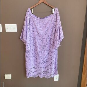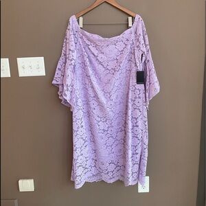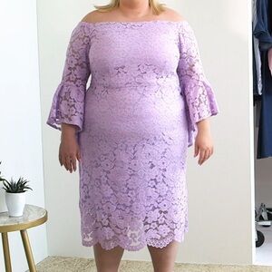 NWT Eloquii Off the Shoulder Flare Sleeve Lace Dress Lilac Purple Size 16