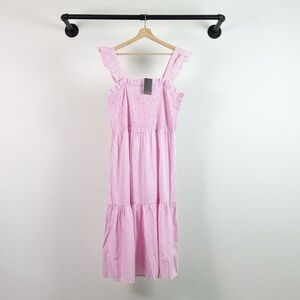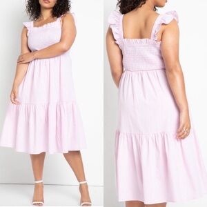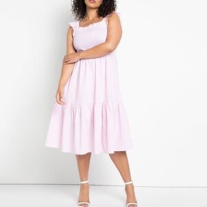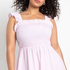 NWT Eloquii Plus Smocked Bodice Ruffle Strap Striped Day Dress Pink & White