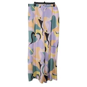 NWT Eloquii Printed Wide Leg Palazzo High Rise Pants Plus Sz 16 Pastel Pull On