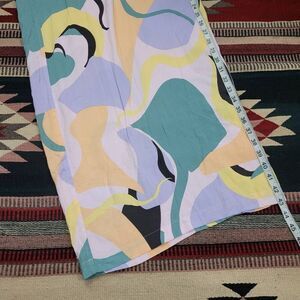 Eloquii Printed Wide Leg Palazzo High Rise Pants Plus, Geometric Pastel colors, Pull On, flat front and Elastic Waistband on back, pockets, lightweight rayon.