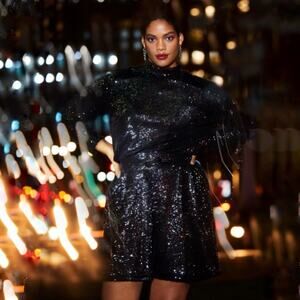 NWT Eloquii Sequin Shorts Black Belted Party New Years Eve Vegas Size 20