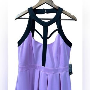 NWT Eloquii halter top mini dress. Women’s size 16. A really pretty pink/purple color. It changes a bit in different light settings. I’d say it does lean more towards being pink though. Has pleats on the front and back. Strappy detailing on the neck and back. 2 button closure at the back of the neck and zipper in the back. Spare button attached too. Zero flaws.