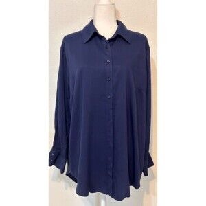 NEW- Eloquii Women's Size 14 Long Sleeve Button Down Dark Blue Shirt.