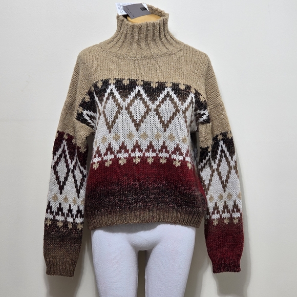 NWT Elsamanda Sweater Sz L Alpaca Wool Blend Boucle Aztec Fairisle Made in Italy