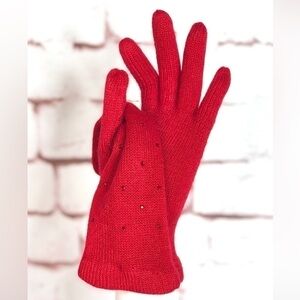 NWT Embellished RED Knit Gloves One size 1 Pair NEW WITH TAGS
