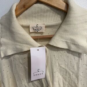 NWT Ember wide collar puff sleeve button down cream cardigan M