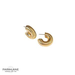 Sleek metal ribbed design • Hollow styled hoop • Feather weight • Available in gold metal • 1 /1/8” diameter