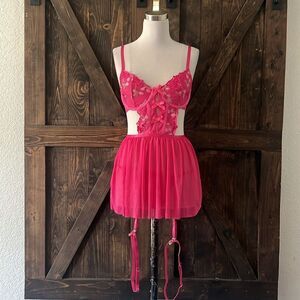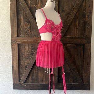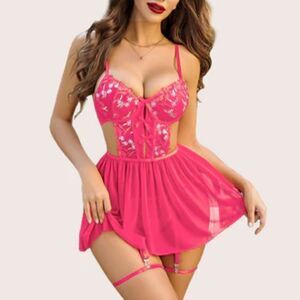 NWT Embroidered Lace Babydoll Underwire Mesh Nightgown