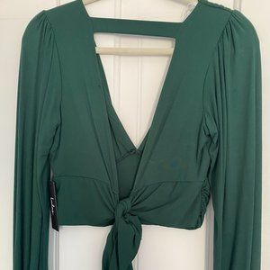 NWT- Emerald Green Long Sleeve Tie-Back Crop Top- Size M