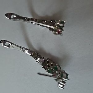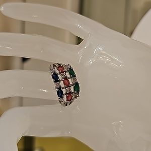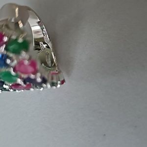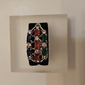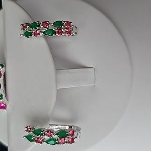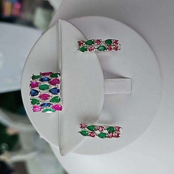 Isn't this jewelry Georges? It's beautiful, simulated Emerald Multicolor Earrings and Multicolor rings. There are two different rings. One is size 7 (as in the first picture, and the other is size 10. Multicolor cubic zirconia. You will love this set. Perfect to combine with solid colors of outfits. You will call the attention of others. The items are both stamped as 925. See the picture carefully. Measurements: 24 mm x 15 mm. Size of the ring: 7. Please print out the instructions submitted to maintain your jewelry clean and durable. No lowballing will be accepted. Thanks.