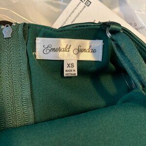 NWT Emerald Sundae XS Hunter Green Pleated Floor-Length Gown