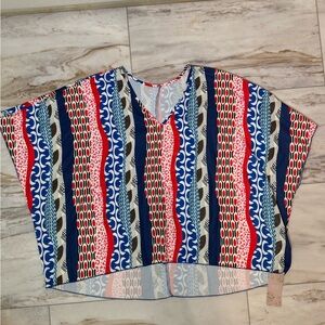 NWT Emery Rose Colorful Geometric Print High-Low Blouse 1XL