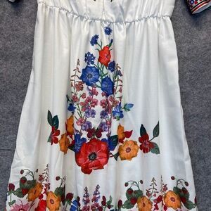 NWT Emery Rose Dress Women's Small White Floral Boho Short Sleeve A-Line V-Neck