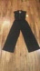 This is brand new. Has two front pant pockets with self tie drawstring with gold tone hardware at the end, elastic waist, zipper at chest , wide leg finish and tow fake pockets at cheat