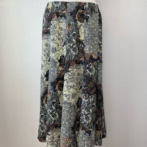 Beautiful reversible skirt by Emma James measuring 16 inches at the waist lying flat and 31 inches in length.