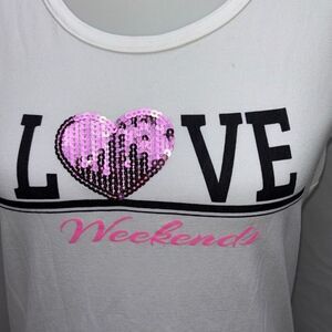 NWT Emme Jordan white tank top shirt LOVE Weekends bling heart L