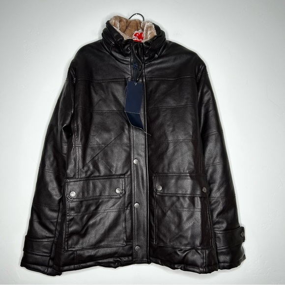 NWT Emporio &Co Dark Brown Faux Leather Jacket Coat Size XXL Fits like a Large