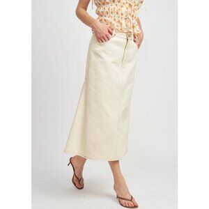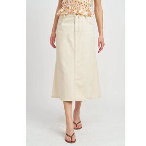 NWT En Saison Caroline Ivory / Off white Denim Midi Skirt Size Small