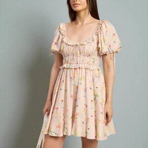 En Saison Mia Ruffle Puff Sleeve Mini Dress Pink Multi Size Small NWT