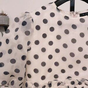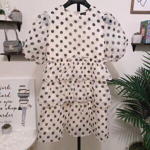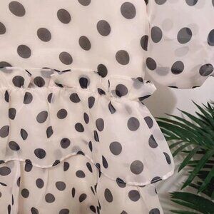 NWT En Saison Organza Polka Dot Print Mini Dress Size Small Ivory Black