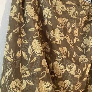 NWT En Saison Women's size Medium Mushroom Floral Brown Daphne Ruched Midi Skirt
