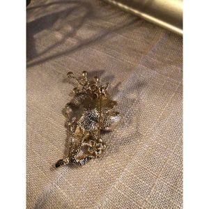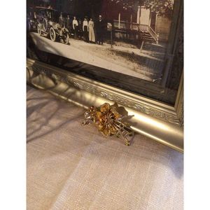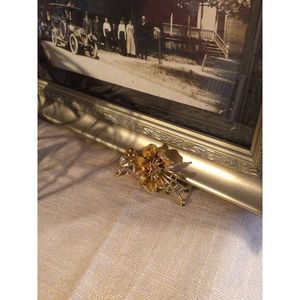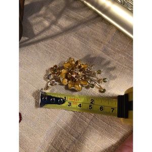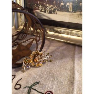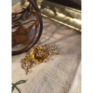 NWT Enameled Flower Brooch Pin Honey Beige & Carmel With Rhinestones BEAUTIFUL!