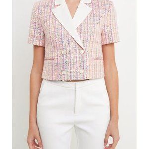 NWT Endless Rose Cropped Blazer Top Barbie Pink Sequin