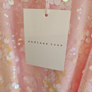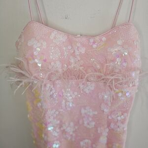 NWT Endless Rose Pink Sequin Feather Sleeveless Women's Mini Dress Size …