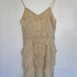NWT Endless Rose Polka Dot Ruffle Strap Ivory Mini Dress, Small, NEW. In new with tags condition. Fitted for a flattering silhouette, this dress features a ruffle detail at the skirt and straps. Invisible zip closure with a v-neck. Fully lined. When laid flat, this dress measures 17” across from pit to pit and it has a length of 25” along the back.