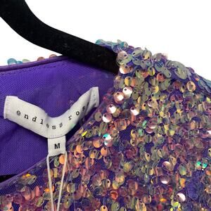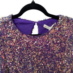 NWT Endless Rose Sequin Shoulder Pad Long Sleeve Top Purple Iridescent Medium