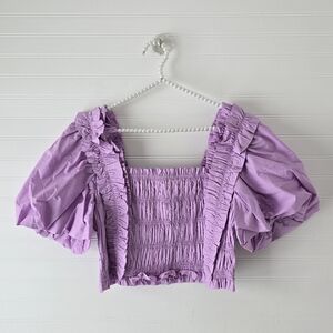 NWT Endless Rose Smocked Puff Sleeve Top Purple Lilac Medium