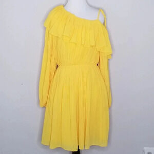 New with Tags Endless Rose for Nordstrom yellow one shoulder dress with beautiful pleat detail. Fully lined. Elasticized neckline and waistline. One shoulder style with tie shoulder. Draped ruffle overlay.