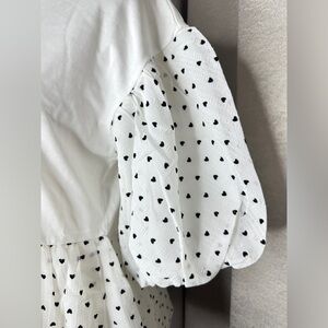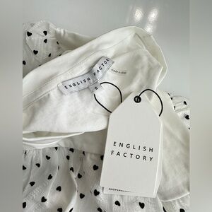 NWT English Factory Contrasting Heart Dotted Puff Sleeve Peplum Top White Sz S